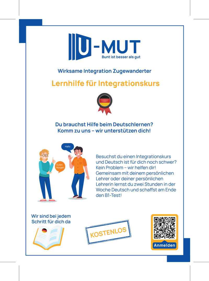 Erfahrene und qualifizierte Bildungsbegleiter:innen unterstützen Teilnehmer:innen, die einen Integrationskurs besuchen und helfen ihnen das Sprachniveau GER B1 Deutsch zu erreichen.